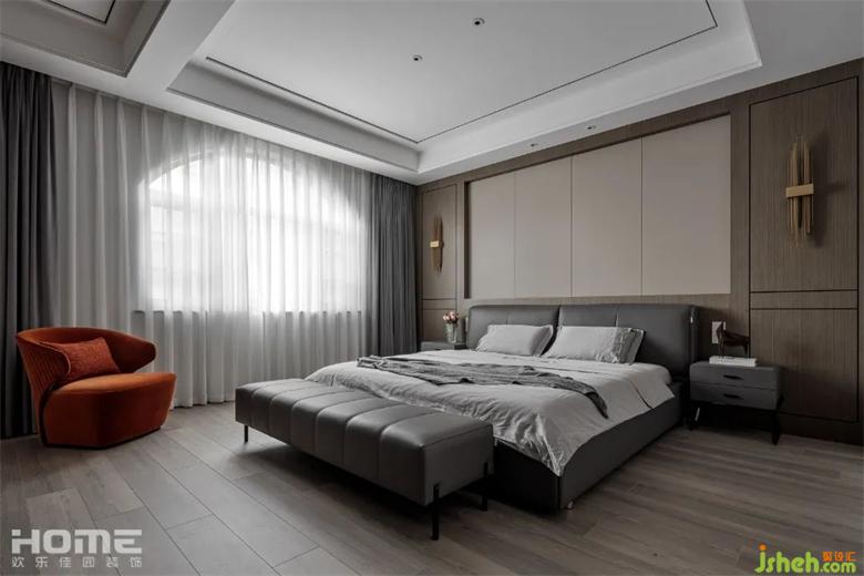 意式落地床將整體視感拉低,降低空間壓迫感,別墅設(shè)計(jì)營造寬敞的空間效果,增加人在空間活動(dòng)的舒適度。