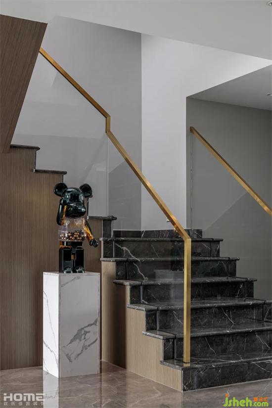 本案空間整體以高級灰為主基調(diào)來打底,不同的金屬材質(zhì)與藝術(shù)漆貫穿空間各角落。別墅設(shè)計脫離一切浮華和不實用,從生活的本質(zhì)和業(yè)主的生活習(xí)性出發(fā)以極簡的設(shè)計演繹最本質(zhì)的意式輕奢美學(xué)!