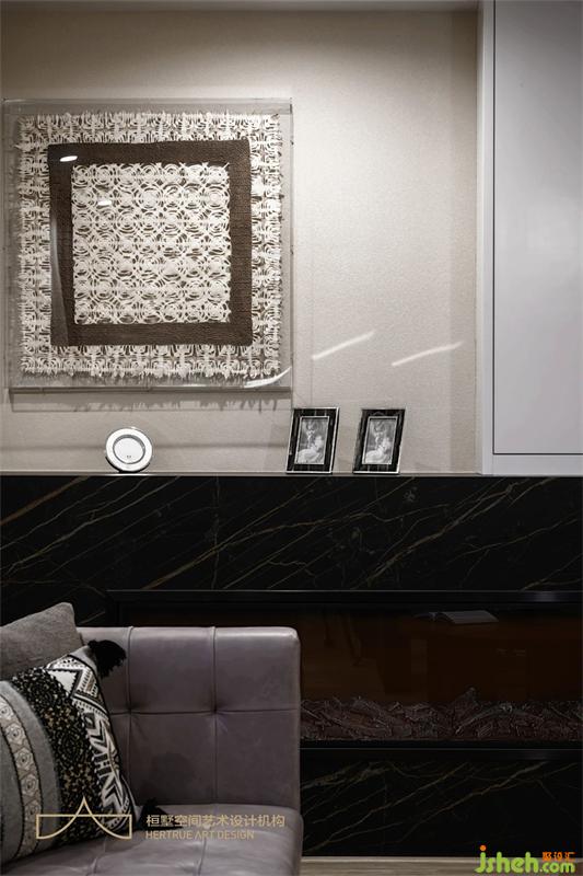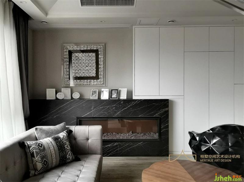 版面構(gòu)成的簡練書柜便于收納,一抹跳動的火焰于冷峻里待點(diǎn)燃。