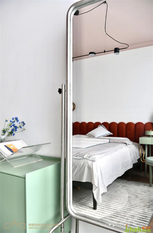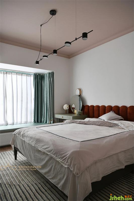 永遠保持少女心,但始終喜歡簡單?,摤摰姆块g簡潔舒適,頭頂一抹粉的加入讓氛圍驟然生動起來。清風徐徐,窗簾悠然擺動,影影綽綽,光影若夢。
