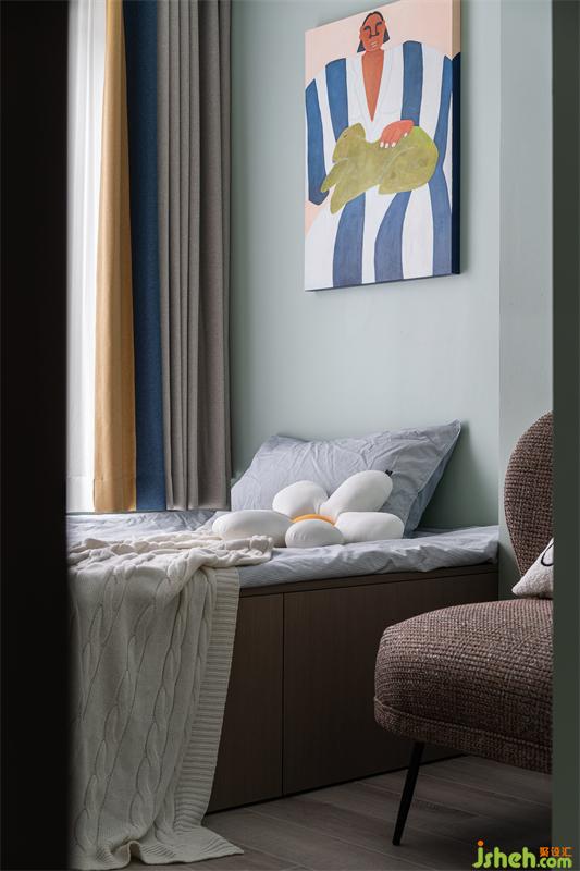 衣帽間兼顧休閑書房的功能,懶人沙發(fā)坐躺休閑,安靜的享受一個(gè)人的獨(dú)處,一個(gè)安靜的小空間,看一本書、一本雜志,也可以自顧自的梳妝。