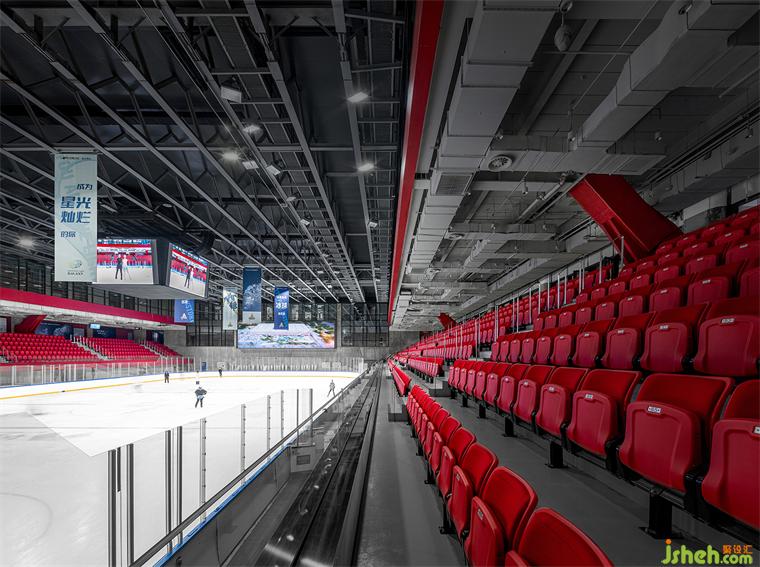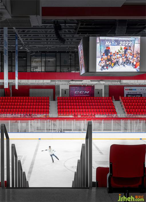 華熙LIVE·五棵松·冰上中心,設(shè)置南北兩塊30x61m的標(biāo)準(zhǔn)冰面,北側(cè)冰面可根據(jù)賽事需求調(diào)整冰面大?。槐眰?cè)標(biāo)準(zhǔn)比賽冰球場含看臺1703座,南側(cè)訓(xùn)練場204座,既能滿足大型冰上賽事需求和專業(yè)訓(xùn)練,又因為其靈活、現(xiàn)代、易轉(zhuǎn)化的空間在未來適應(yīng)各種空間功能、持續(xù)產(chǎn)生商業(yè)價值,持續(xù)為商圈和城市賦能。