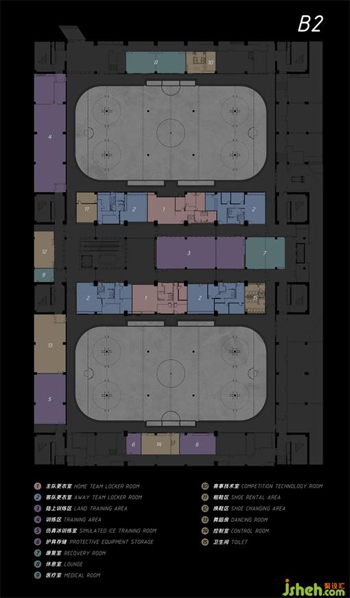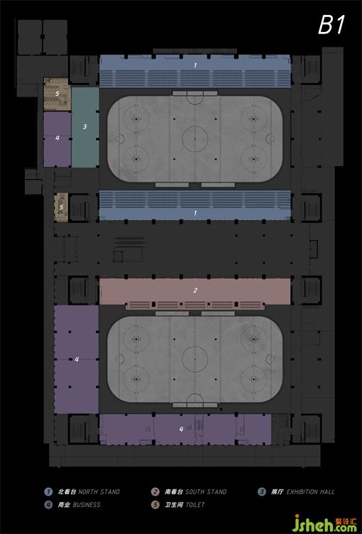 五棵松冰上中心位于場地東南角;總建筑面積:38960㎡,其中地上建筑面積:16400㎡,地下建筑面積:22560㎡。