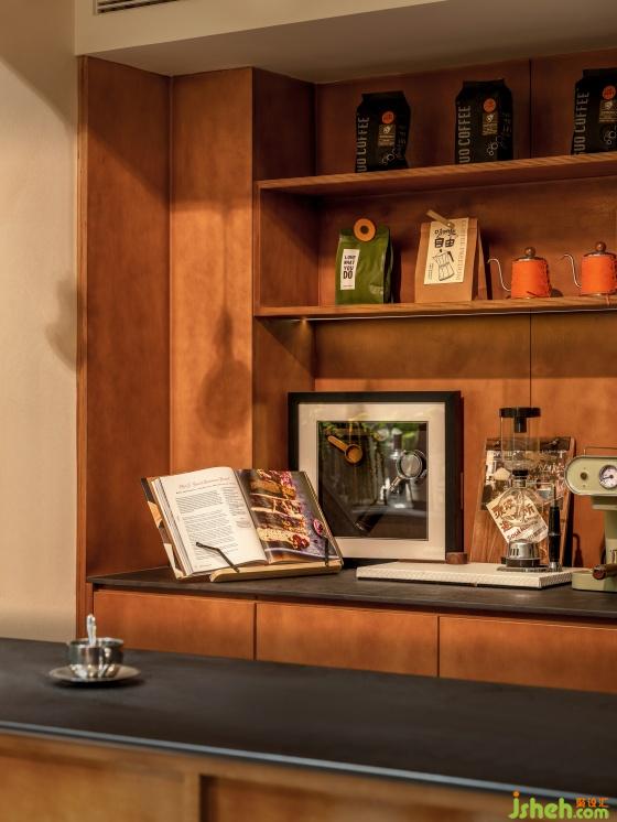 咖啡區(qū)和影音區(qū)構(gòu)成B2層一塊自在松弛的功能區(qū),獨(dú)處或社交場(chǎng)景可以靈活轉(zhuǎn)換。胡桃木定制的咖啡吧充分滿足了收納與展示的功能需求;體量寬大厚重的下午茶桌肌理粗獷自然;繁盛錯(cuò)落的植物是充斥生命力與想象的熱帶花園。