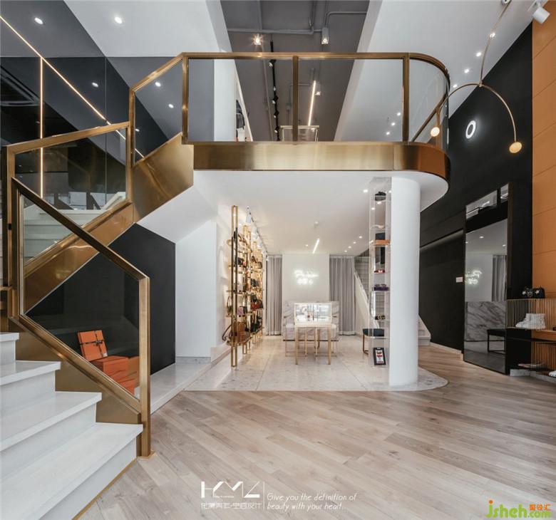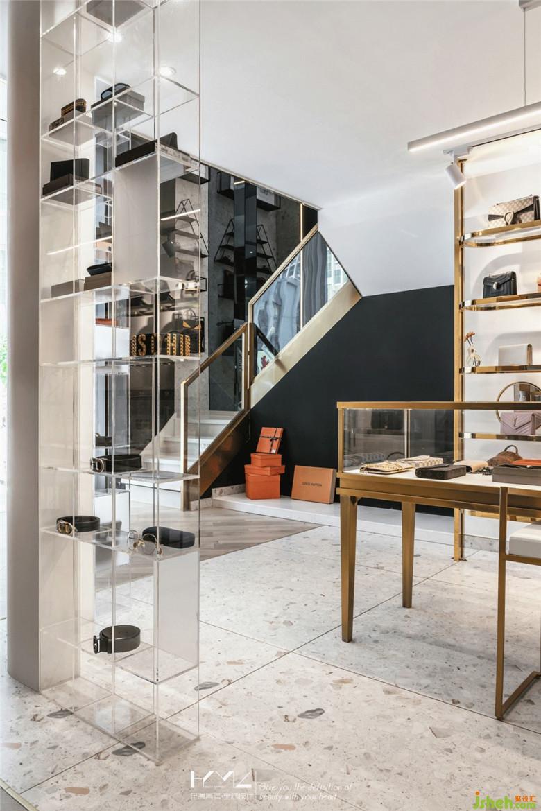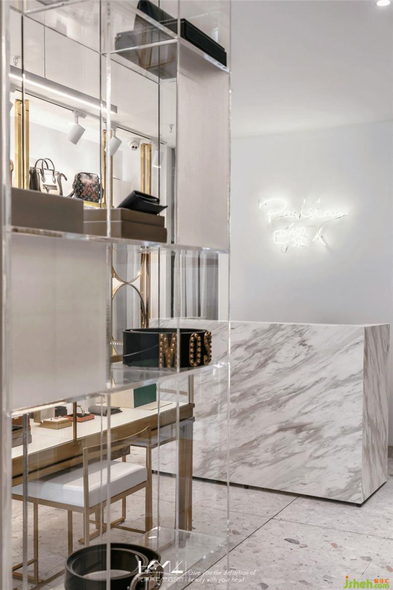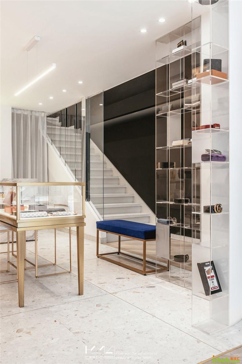 過道空間,裝修公司使用地板鋪設(shè),擁有更好的腳感和親和度,地板的鋪設(shè)角度也是精心考慮,讓地面空間更將活躍靈動(dòng);產(chǎn)品展示區(qū),地面選用時(shí)下流行的水磨石地磚,經(jīng)過打磨的精致石材肌理,也與我們的產(chǎn)品相呼應(yīng),同時(shí)也是更好的方便打理,在部分的展示背景墻面我們也使用了同樣肌理的水磨石墻磚,與地面呼應(yīng),同時(shí)保證空間的材質(zhì)更加整體統(tǒng)一。