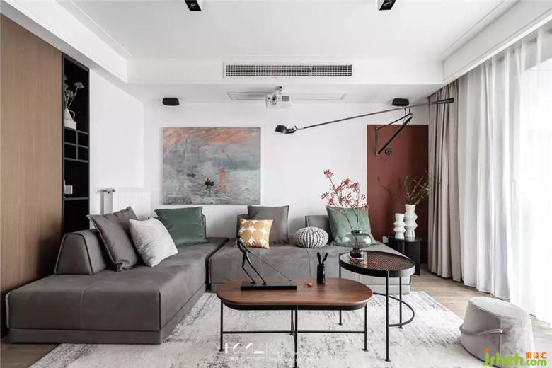 沙發(fā)背景在白色調(diào)的基礎(chǔ)上,增加一抹緋紅,與莫奈的《日出·印象》色彩相呼應(yīng)。正如莫奈所說:很多人認(rèn)為一定要去理解什么是美,甚至偽裝成很理解美的真諦。其實(shí),真正的美無需要去理解,只要學(xué)會(huì)去愛惜,已經(jīng)很足夠。家也是如此......