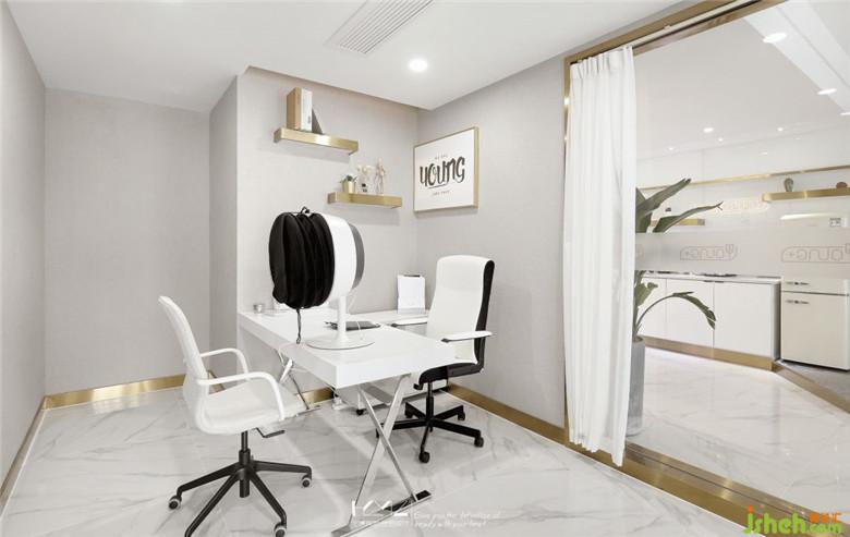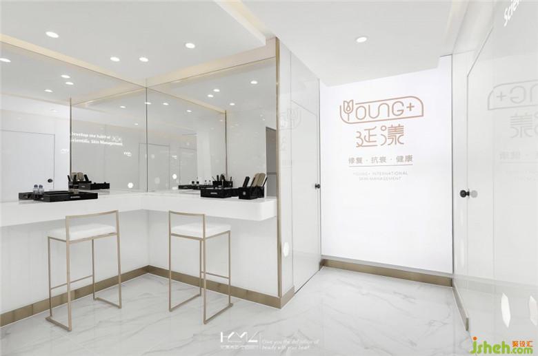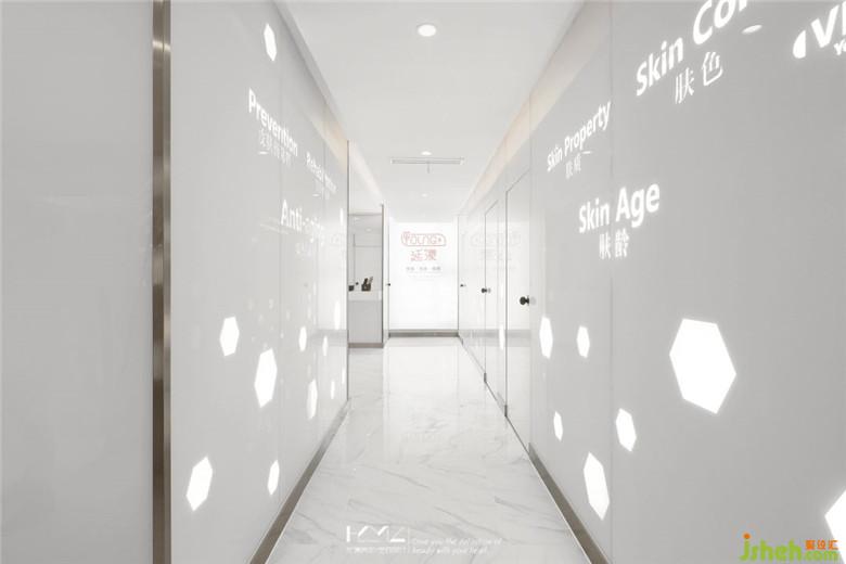 美容區(qū)通道全部采用超白玻結(jié)合整體燈箱照明,裝修公司以白凈設(shè)計主題結(jié)合各類白色材質(zhì)元素,利用led背景光板使空間有種時光隧道的穿越感。