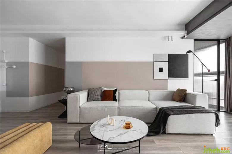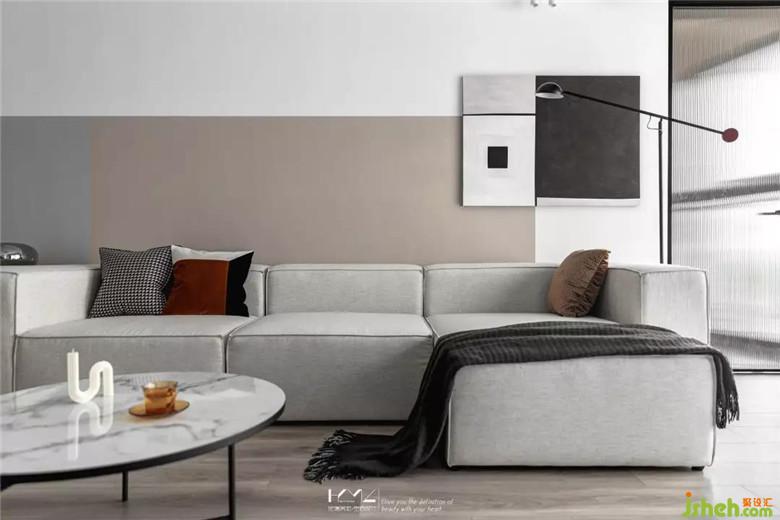 沙發(fā)背景三色分隔,裝飾畫同元素搭配