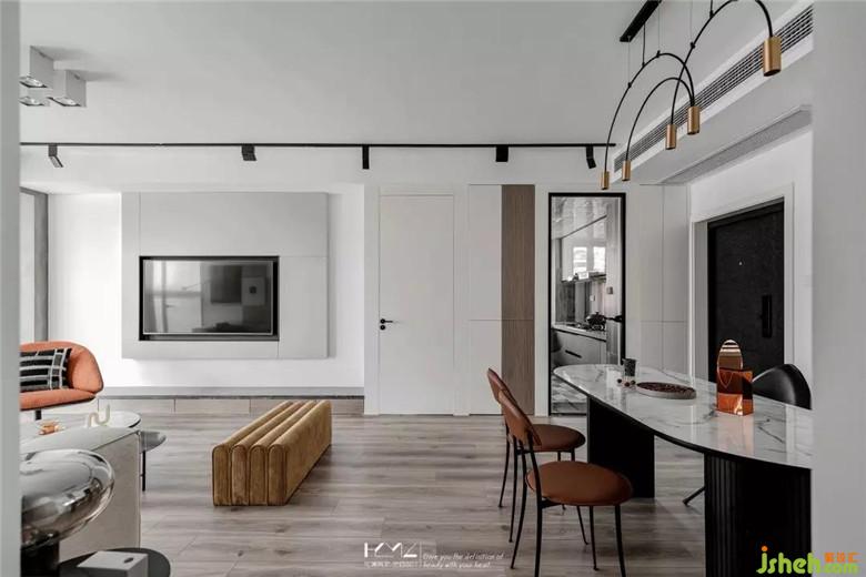 裝修公司電視背景線條切割,與沙發(fā)背景裝飾畫異曲同工