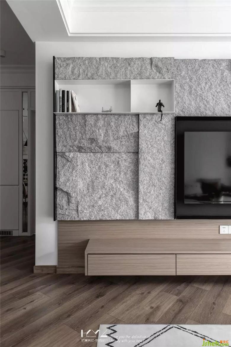 客廳的兩面背景裝修公司采用了一張一弛的設(shè)計(jì)手法,電視背景采用堅(jiān)硬的石皮、鋼板和溫潤(rùn)的木制搭配,充滿現(xiàn)代感。沙發(fā)背景圓角的處理以及白色線條的加入,調(diào)和了電視背景稍顯冰冷的感覺。休閑現(xiàn)代風(fēng)的原木家具,增添了空間溫暖的感覺,燈具及植物掛飾細(xì)致點(diǎn)綴。