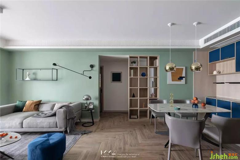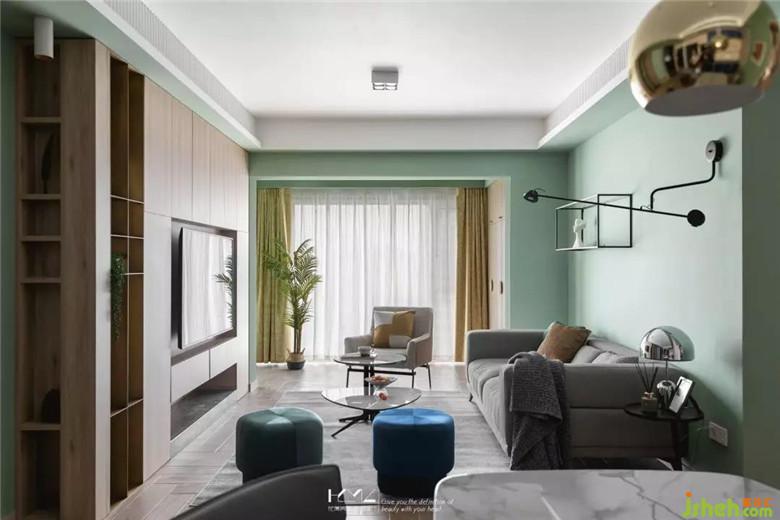 沙發(fā)背景與電視背景,乳膠漆與木飾面大塊面色彩