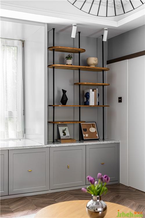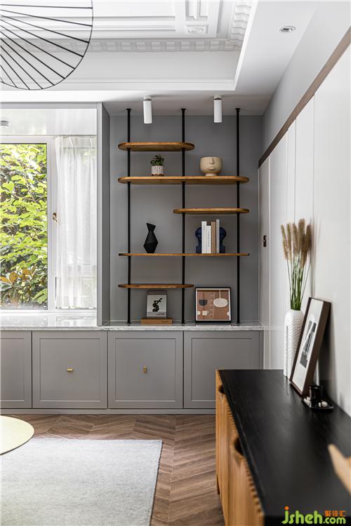 飄窗臺下方,整排實(shí)用的儲物柜