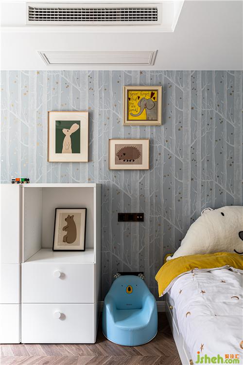 兒童房窗簾、壁紙、床品的搭配盡顯童趣