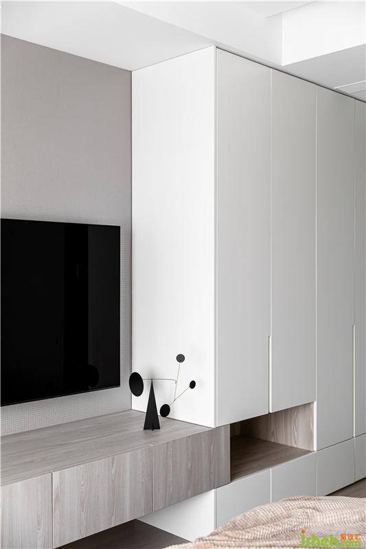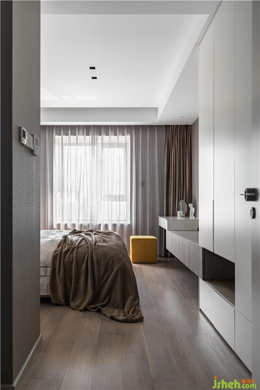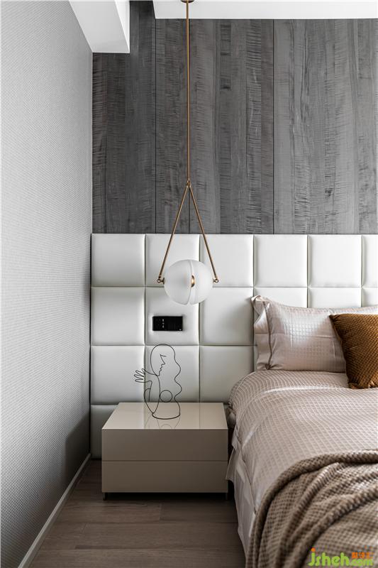 主臥寧靜雅致,暗紋高級質(zhì)感進口墻紙滿鋪,方塊巧克力裝的軟包一字排開,取代了常規(guī)的床頭設(shè)置,杭州家居裝修設(shè)計在點線面的排布中有著熟稔自如的轉(zhuǎn)換,且蘊藏豐富的細(xì)節(jié)。