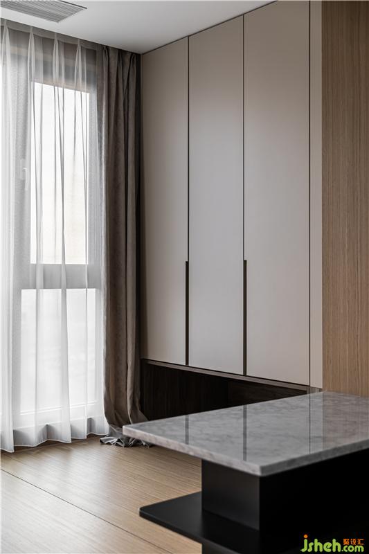 五金件均采用了預埋手法,石材紋理與黑色五金的材質對比,細膩質感延伸至每個角落.