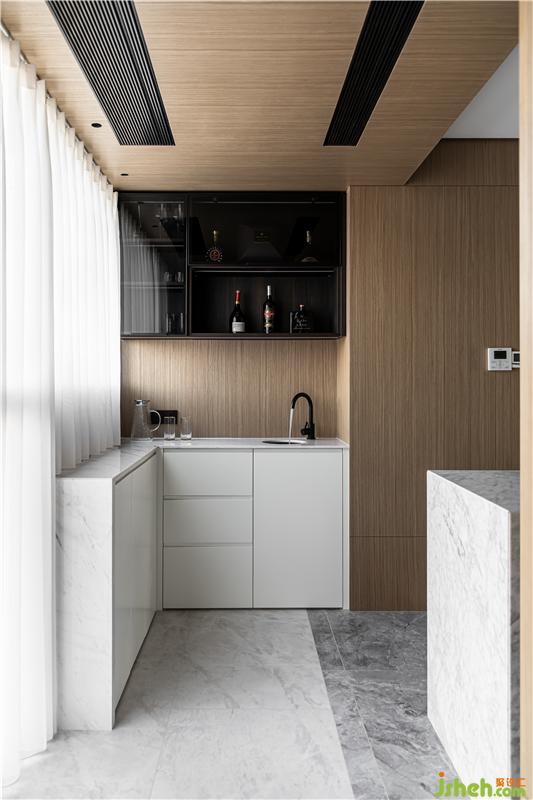 房門均取消常規(guī)門套,隱形處理,不同材質(zhì)之間的交融錯(cuò)疊,表象所見(jiàn)之外更具功用的內(nèi)核。