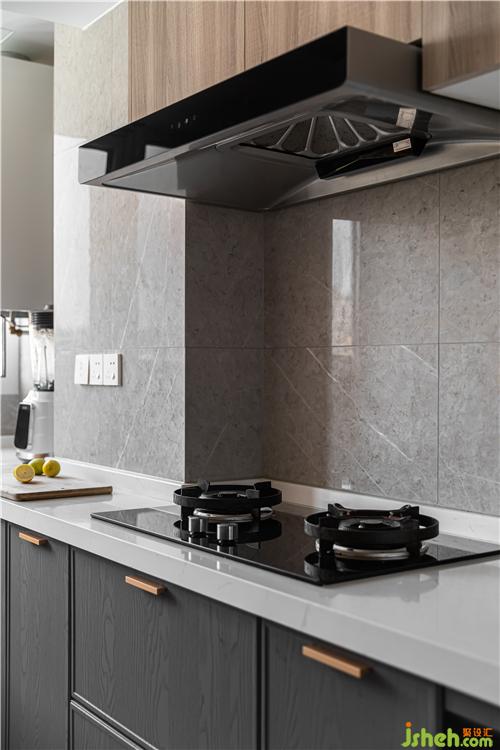Gray hard pack setting is arranged and combined, below the space fundamental key of white and lukewarm embellish woodiness, try the yellow copper ornament of fine line, atmosphere graceful and restrained in, all show simple sense.