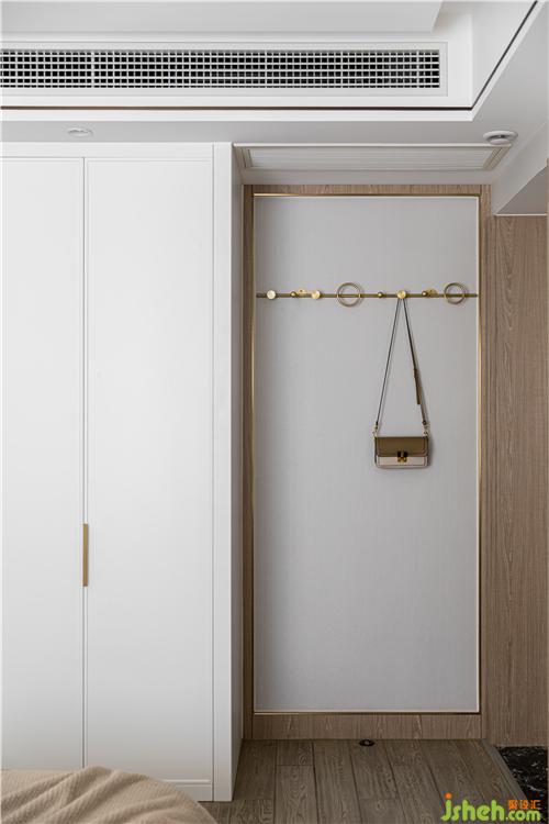 主臥與男孩房間的墻體內(nèi)凹,置入面向主臥的衣帽柜,保證柜體的使用率,同時不過多占據(jù)臥室空間.