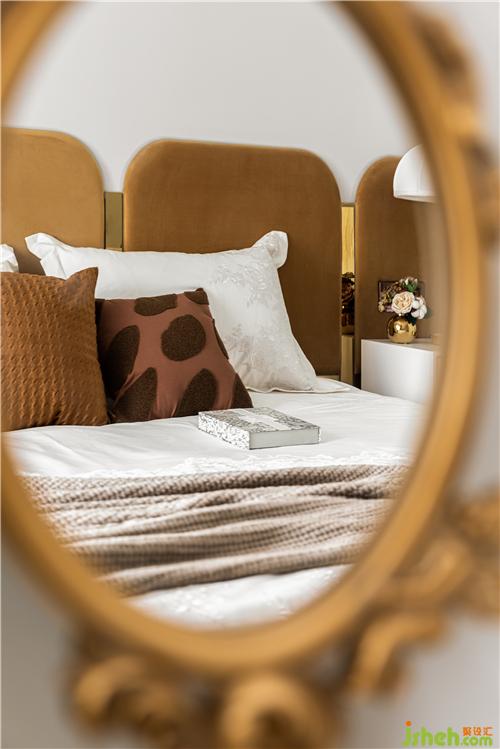 書房整體色調(diào)更為沉穩(wěn),綠色搭配胡桃木使空間彌漫著些許的復(fù)古氣息,功能上結(jié)合書房與客房和收納空間共存使用,圓弧凹凸門板結(jié)合編織紋理壁紙,組合運用,大面深藍綠色乳膠漆滿鋪,讓小空間更好的融合在整個復(fù)古格調(diào)中.