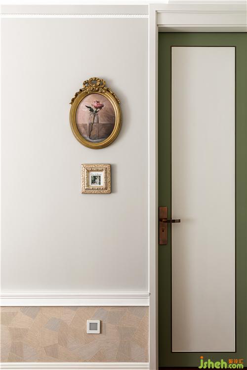 門后是衣帽間,房門進行改色,與其他空間統(tǒng)一.