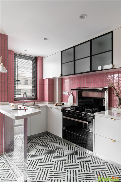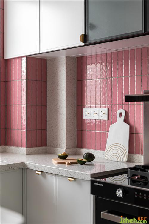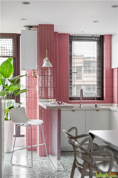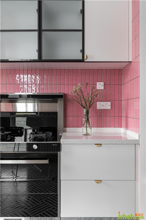 廚房的最大的亮點(diǎn)就是大面積小粉磚的鋪貼,將這個(gè)小小的廚房襯的溫馨自然.