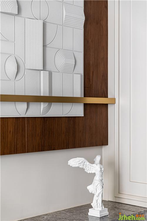 本案的屋主是一對年輕夫妻;男業(yè)主性格沉穩(wěn),低調(diào)內(nèi)斂,喜歡典雅舒適的家居環(huán)境;女業(yè)主性格爽朗,活潑熱情,鐘愛浪漫優(yōu)雅的空間氛圍;融合他們的喜好,室內(nèi)設(shè)計師以奶茶色、胡桃木色、焦糖色為主色調(diào),營造一種復(fù)古優(yōu)雅、沉穩(wěn)精致的家居氛圍……