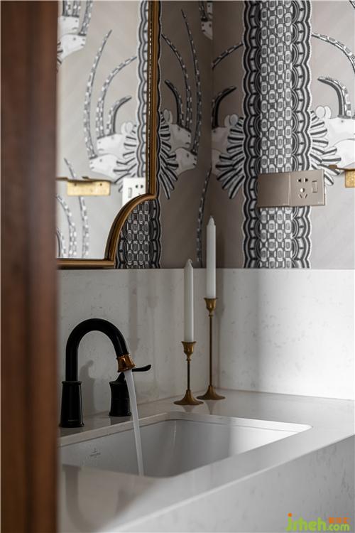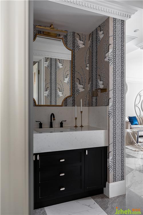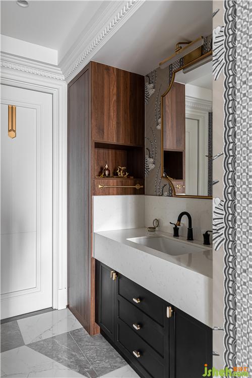干區(qū)室內(nèi)設(shè)計(jì)師延續(xù)客餐廳的優(yōu)雅復(fù)古風(fēng)格,更增添了幾分精致感,生活的儀式感從晨起洗漱開始...