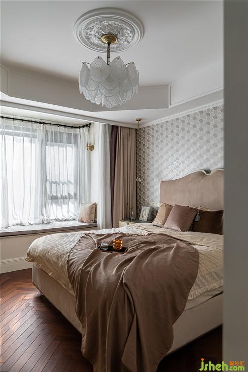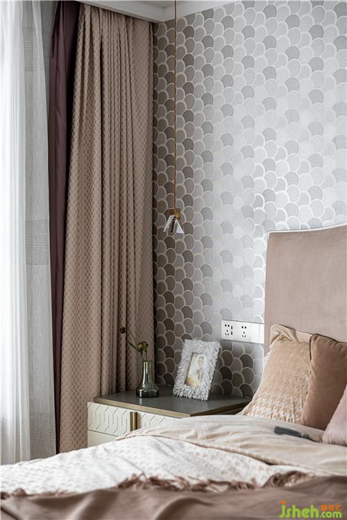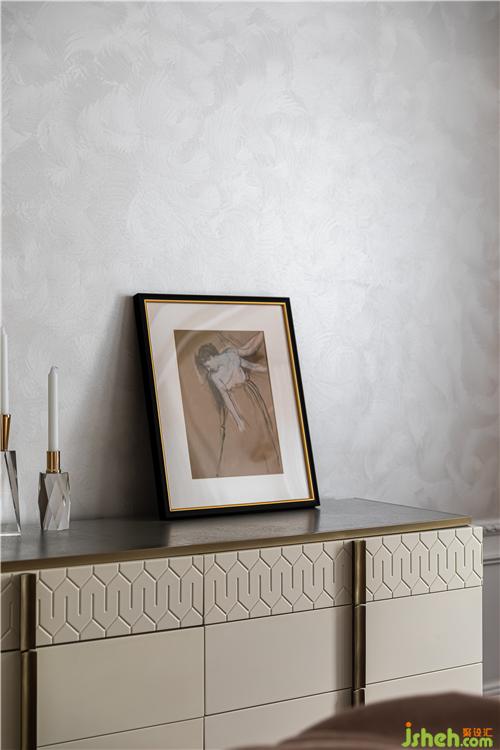 進(jìn)口圓點(diǎn)壁紙和絲絨藝術(shù)涂料的光澤質(zhì)感為原本溫潤的空間帶來精致時(shí)髦感;石膏雕花燈盤、藝術(shù)手工玻璃吊燈、羅馬桿紗簾,溫柔且夢幻,優(yōu)雅而愜意,無不散發(fā)著輕奢的高級感.