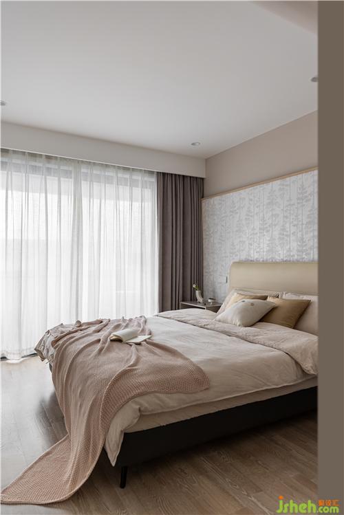 主臥以奶茶色為空間的主色調(diào),吊頂?shù)幕∶媾c背景的曲線呼應(yīng),結(jié)合背景氛圍燈帶,營造優(yōu)雅溫柔的空間氣質(zhì)南京裝修設(shè)計(jì).