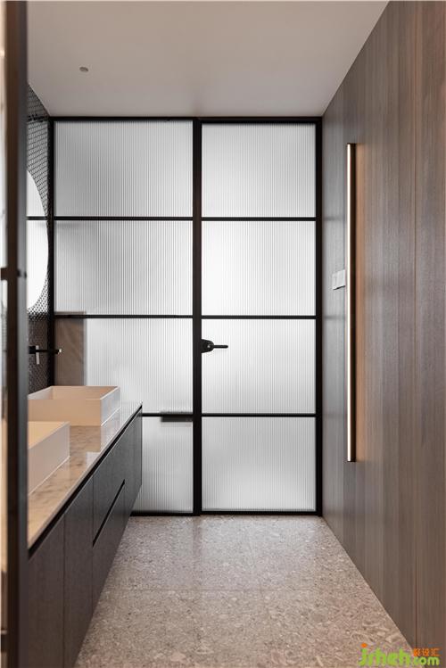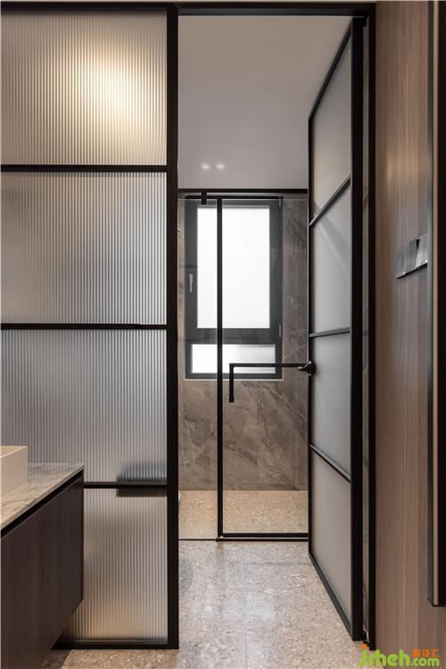 地磚整體跟貼進(jìn)去,取消了門檻石,淋浴房也取消了擋水條,做了下陷設(shè)計(jì),黑色門框的勾勒增加了利落的現(xiàn)代感.