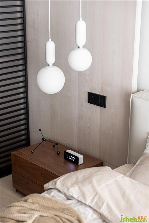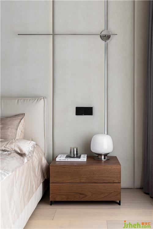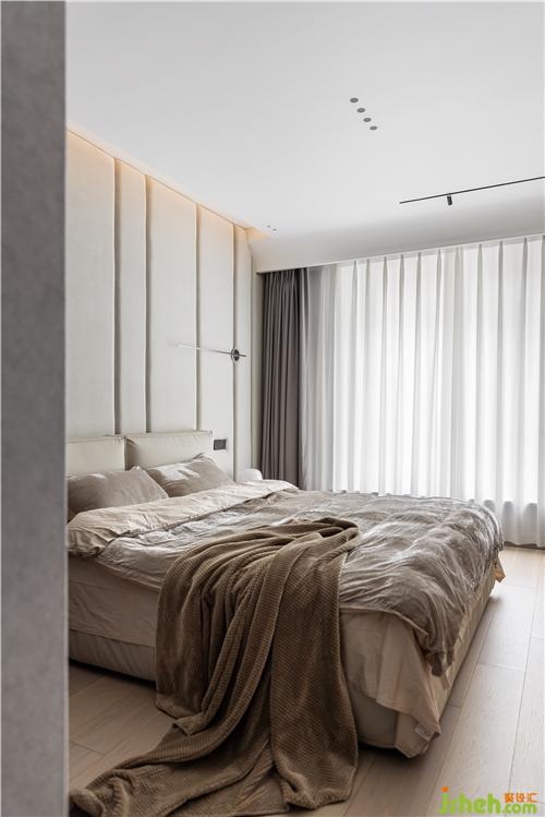 主臥延續(xù)了客廳的調(diào)性,柔和的色彩、靜雅的線條、安靜不張揚(yáng),優(yōu)雅的配色抹平了生活棱角,簡(jiǎn)約素雅中夾雜著一份寧?kù)o,讓人身心放松.