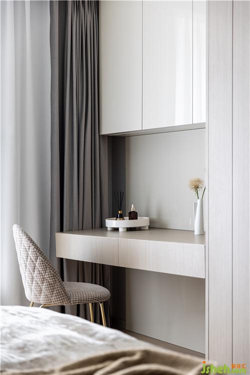 內(nèi)嵌的書桌兼梳妝臺(tái),滿足了居家生活的多重需求.