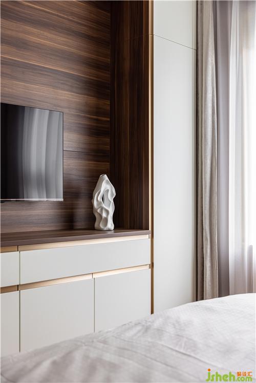 臥室的護(hù)墻部分做了改色處理,為空間注入色彩,打破乏味.