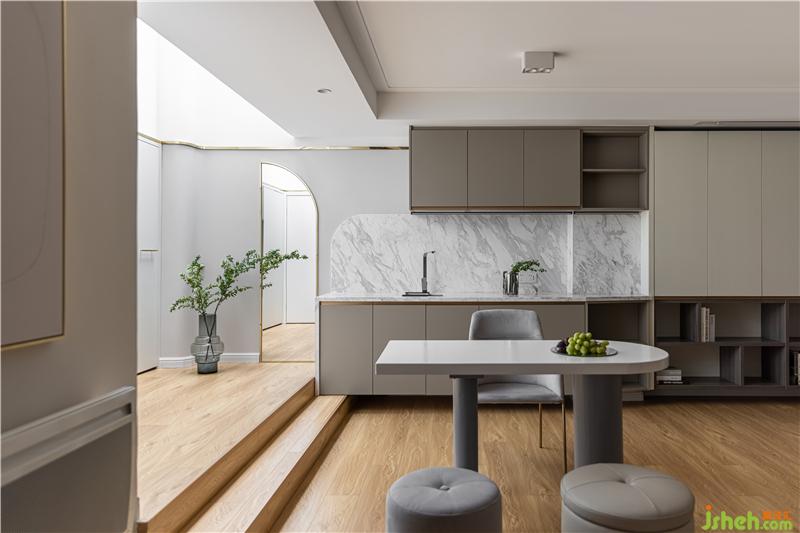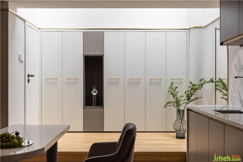 在人與空間的互動中,整體色彩的轉(zhuǎn)折趨于平緩,用利落的柜體顏色搭配金屬線條貫穿整個地下室空間呈現(xiàn)現(xiàn)代而又簡約的美感.