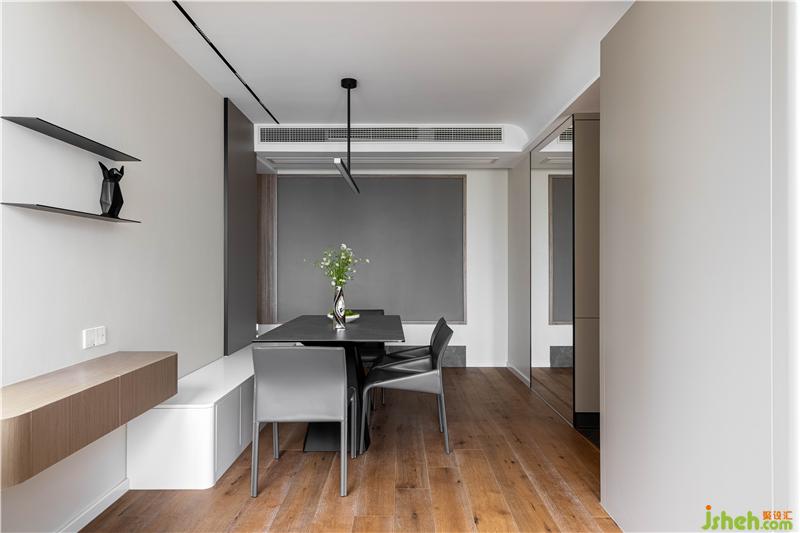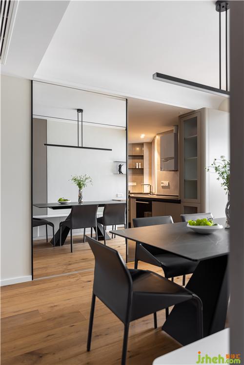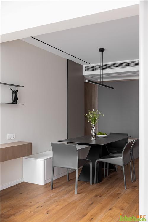 餐廳選用與客廳地臺同色系的巖板材質(zhì)餐桌,與原木色地板搭配,氣質(zhì)溫潤. 綠色植物的點綴南京室內(nèi)設(shè)計師,讓整體氛圍更加清新明快、生機盎然,開啟美妙和諧的用餐時光.