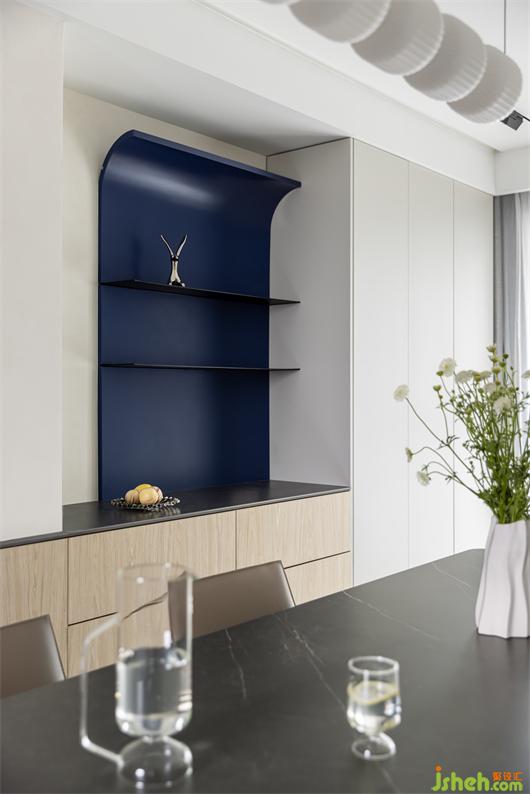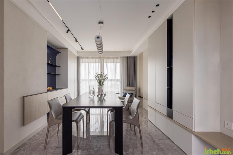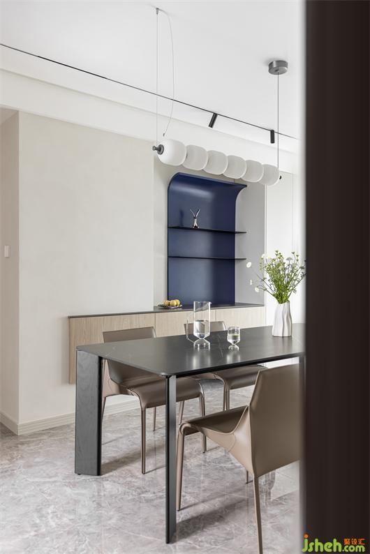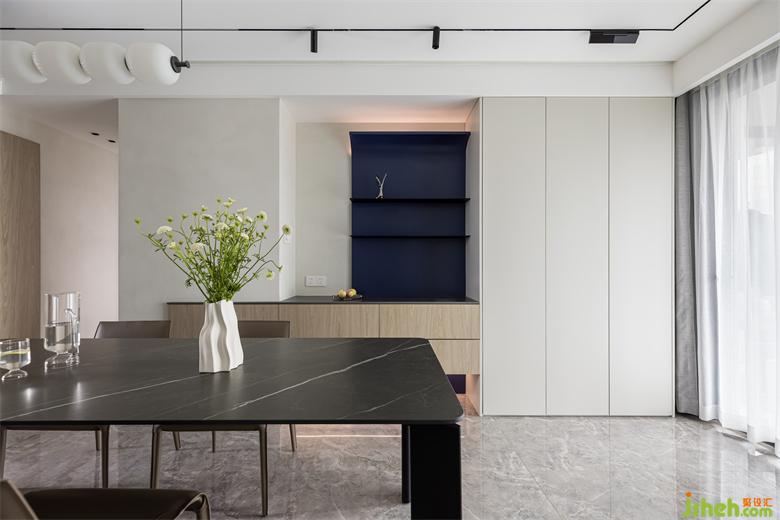 客廳以大長(zhǎng)桌取代茶幾為主中心,舍棄大沙發(fā)布局,南京家居設(shè)計(jì)用方便移動(dòng)的休閑椅代替,創(chuàng)造出集就餐、閱讀、會(huì)客、休閑、辦公為一體的多功能空間,擁有更多的交流環(huán)境. 打破常規(guī)客廳布局,不被固有思維所約束,不被定義,才是對(duì)空間最好的表達(dá).