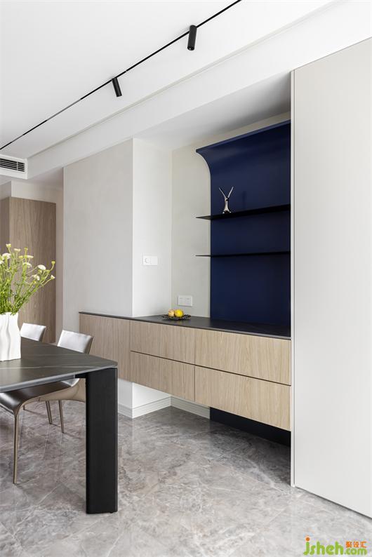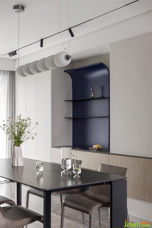 南京家居設(shè)計(jì)克萊因藍(lán)與黑色鋼板置物架搭配,靜謐純粹.