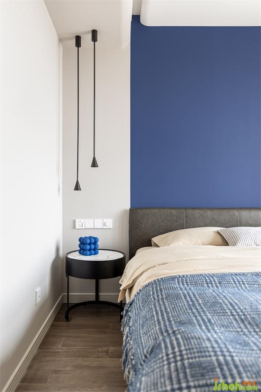 主臥以克萊因藍(lán)為顏色元素 ,也是空間的氣質(zhì)引現(xiàn),它是沉穩(wěn)且富于沉淀的,它決定了空間最重要的氛圍感和氣質(zhì)屬性,傳遞一種被藍(lán)色環(huán)繞且放松的情緒,希望帶給屋主舒適的居住體驗(yàn).