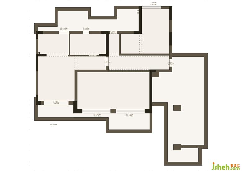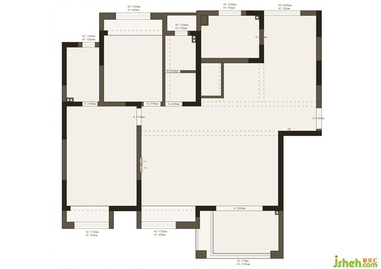 3. 補齊原樓梯洞口,將樓梯入口設(shè)置在靠近陽臺的這側(cè),盡大可能的擴展客廳的使用面積