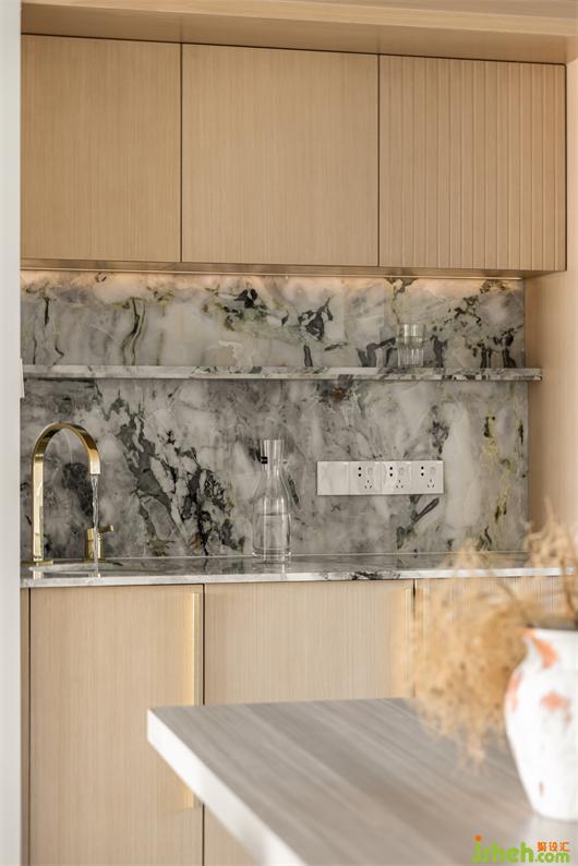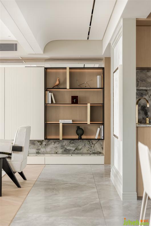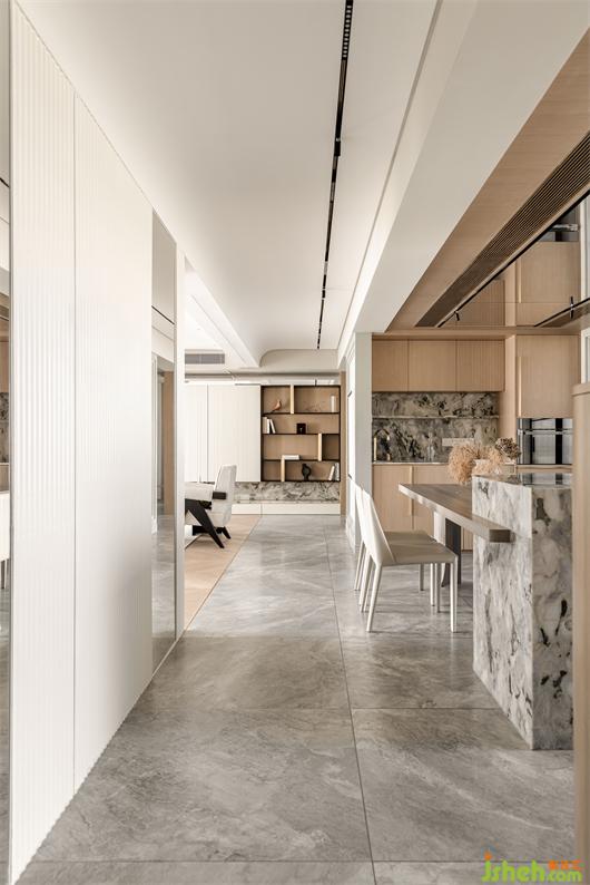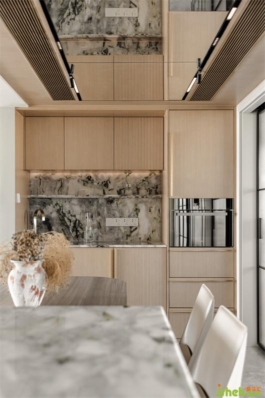 寬敞的空間大面積采用柔和的白色和木飾面色調(diào),內(nèi)飾的每一個細(xì)節(jié)都完美契合,不僅舒適,而且美感十足。冷翡翠的石材點綴包裹,花漾美作讓整體淺色調(diào)的空間增添了豐富性。吊頂最低處采用木飾面與鏡面結(jié)合處理,讓室內(nèi)層高自然得到擴展,原本壓抑的高度豁然開朗了。