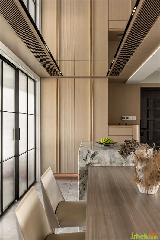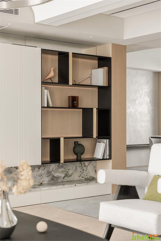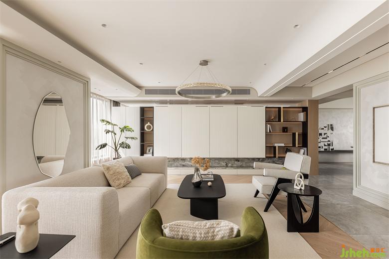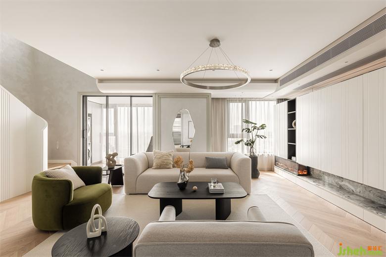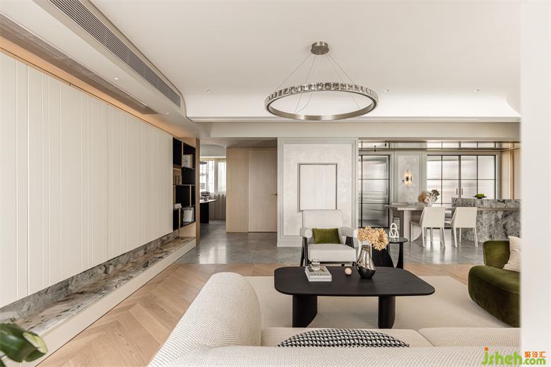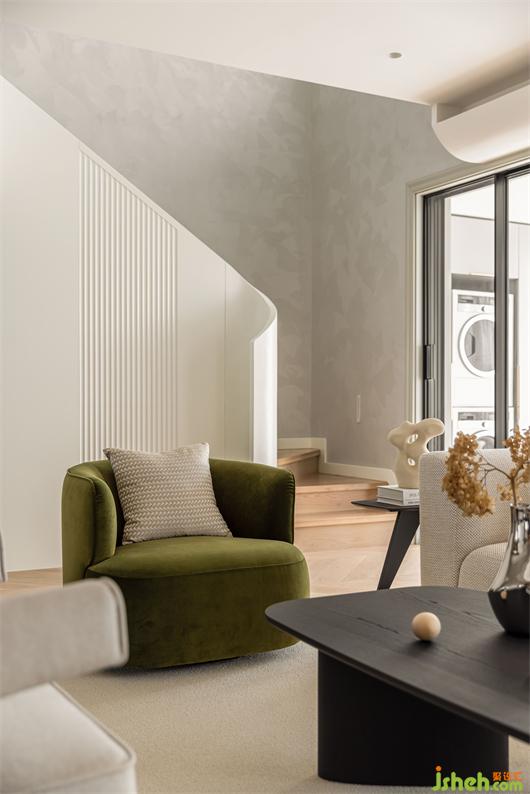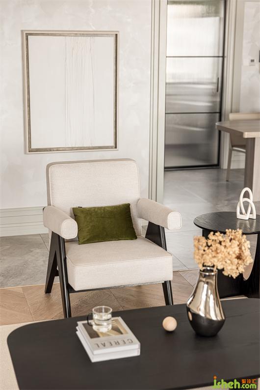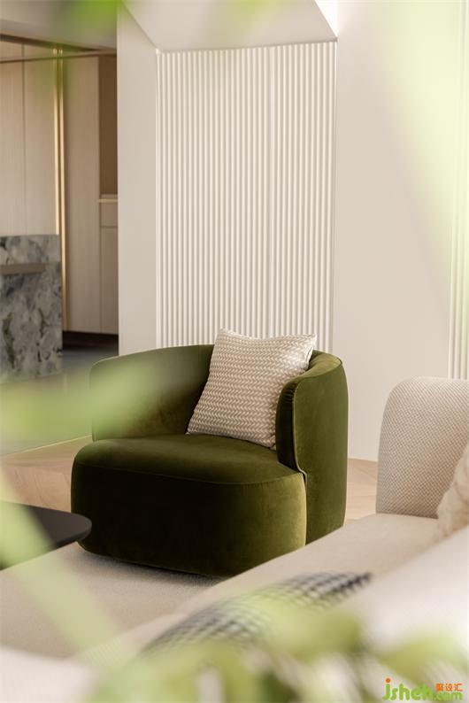 客廳以極簡的設(shè)計手法,打造出一個溫暖靜謐的質(zhì)感空間,輕盈視感的家具單品,圍合出舒適的起居中心,橄欖綠的絲絨沙發(fā)調(diào)和了空間的層次,空間的每一處都盡顯溫柔治愈,去掉不必要的繁雜細(xì)節(jié)和線條,呈現(xiàn)了一個自然純粹美好的居家環(huán)境。