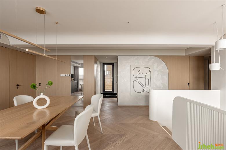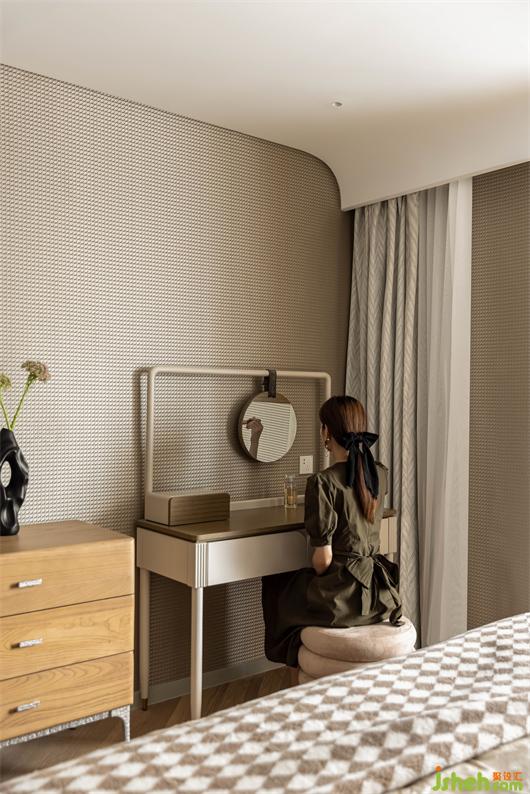 二層公共區(qū)域作為多功能空間,隨意切換家庭聚會(huì),手作學(xué)習(xí)等不同的功能場(chǎng)景。花漾美作整個(gè)空間延續(xù)了一樓大面積木飾面基底,融合灰調(diào)的藝術(shù)涂料的墻面搭配,銀鏡的內(nèi)襯,映襯出空間細(xì)膩的層次感,玻璃磚砌筑的窗將光纖柔和的引入,設(shè)計(jì)語(yǔ)言的鋪成讓空間張弛有度。