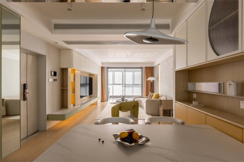 6. 將原來的主臥改成客廳,中間設(shè)計(jì)旋轉(zhuǎn)電視讓客廳動(dòng)線循環(huán)起來