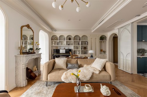 該項(xiàng)目是一個(gè)年輕家庭為孩子上小學(xué)準(zhǔn)備的頂樓躍層學(xué)區(qū)房。原戶型格局緊湊,空間零碎,動(dòng)線紊亂,我們梳理出公共空間的動(dòng)線,在滿足三口之家居住基本需求的同時(shí),花漾美作將功能做到空間最優(yōu)化,整個(gè)風(fēng)格調(diào)性上,運(yùn)用經(jīng)典美式風(fēng)格設(shè)計(jì)手法,將這個(gè)空間打造成富有詩意的,調(diào)性溫潤的,氣質(zhì)典雅的品質(zhì)住宅。