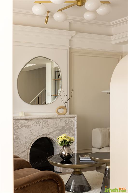 客廳以奶咖色為主色調(diào),局部點(diǎn)綴咖啡色、黑色,在整體溫潤(rùn)的氛圍里,增添絲絨和鏡面材質(zhì),打造古典精致的調(diào)性,凹凸有致的石膏線條和疊級(jí),花漾美作勾勒出空間的生動(dòng)和優(yōu)雅,整個(gè)空間就像一杯醇香的摩卡咖啡,純粹又經(jīng)典!