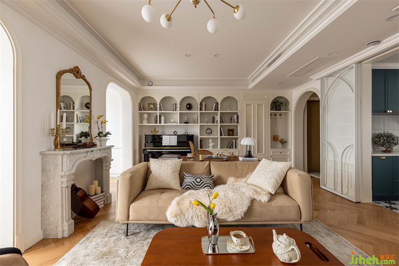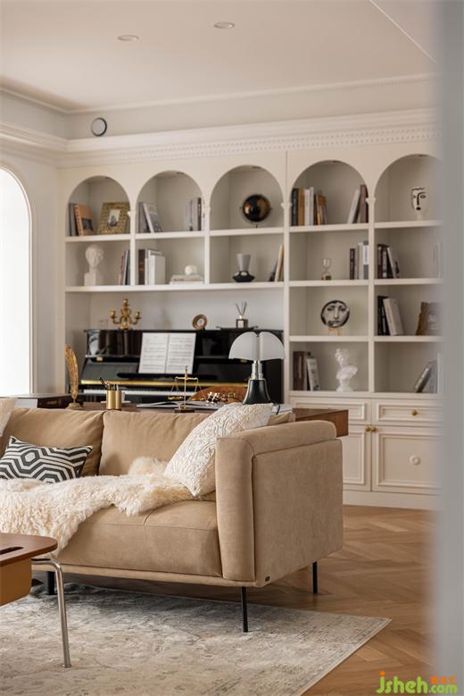 無論是拱門還是柜體開架,拱形線條延伸至整個(gè)空間,南京裝修設(shè)計(jì)公司線條層次豐富、起伏變換,為空間注入一絲來自上一個(gè)世紀(jì)的浪漫與細(xì)膩。
