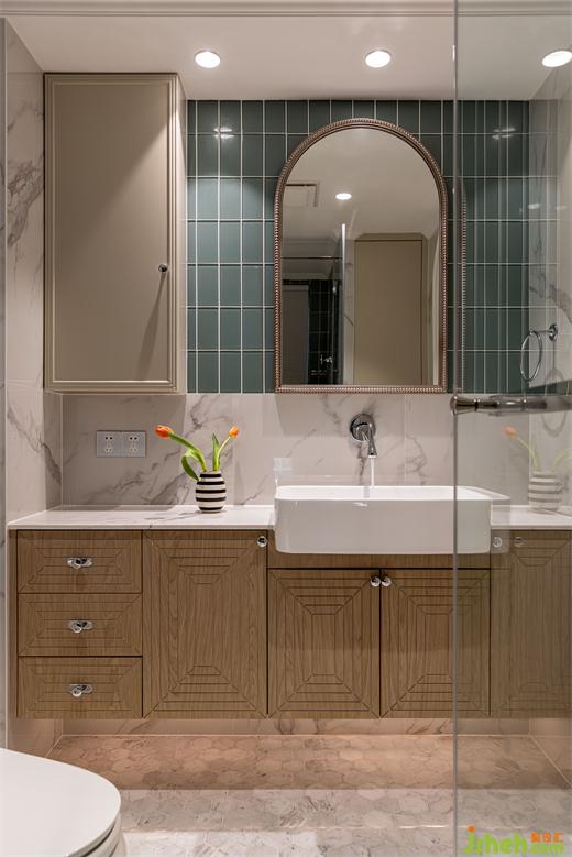 綠色系書房空間不大,卻是家里功能最多的所在,兼具次臥、儲物間,同時容納鋼琴區(qū)。花漾美作裝飾畫結(jié)合了閱讀元素與書房氛圍完美契合,絨布沙發(fā)床與絨布窗簾交相輝映。鋼琴區(qū)開架呼應了客廳的木色元素,柜門上的藤編壁紙為空間帶入幾縷休閑氣息。