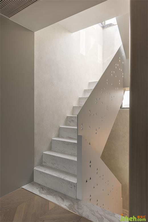 南京家裝設(shè)計(jì)通往頂樓花園的樓梯,自然光也從玻璃天井透進(jìn)室內(nèi)。