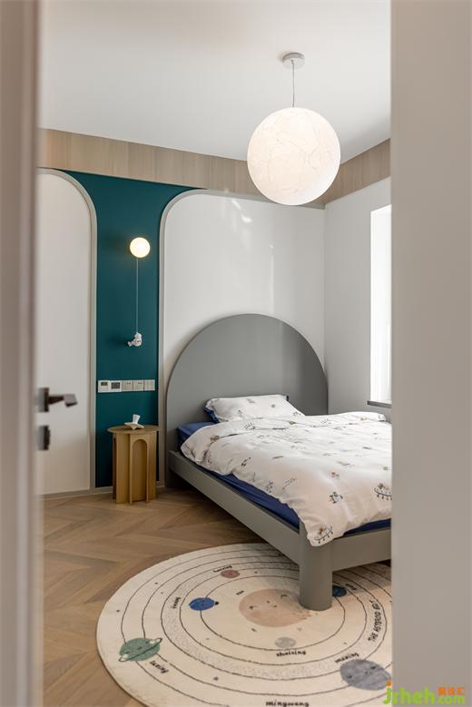 南京家裝設計以宇航員為主題的兒童房,大面積運用撞色,為孩子打造了屬于自己的夢想航空站。