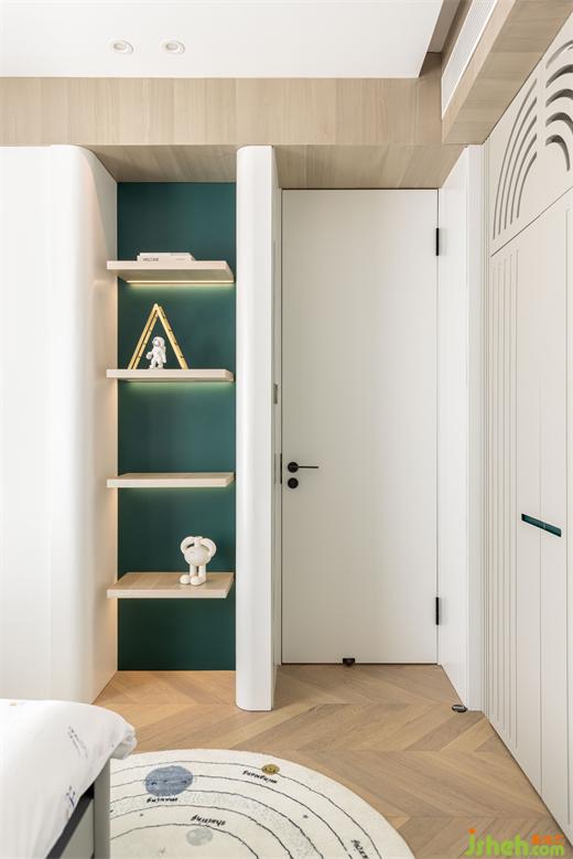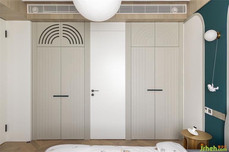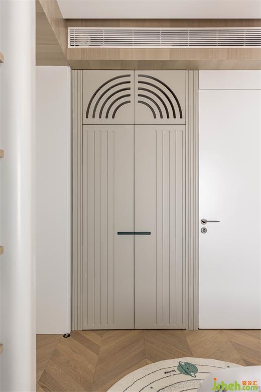 回風口巧妙地隱藏在柜門后,與柜子融為一體;兩個柜體之間是一個通往衛(wèi)生間的隱形門。